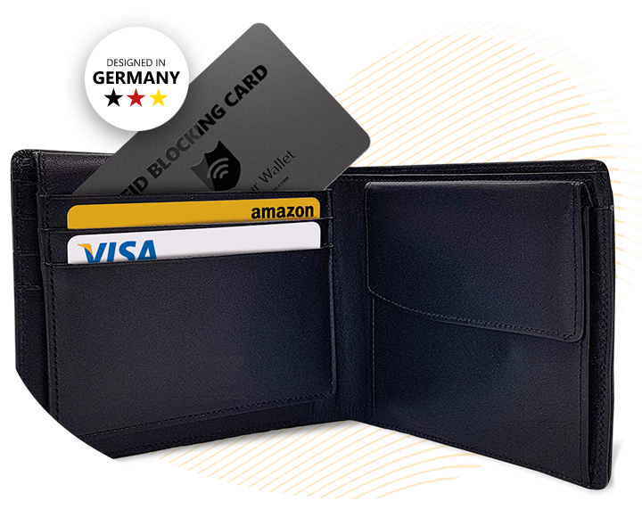 Using an innovative jamming signal, the Nero RFID Blocking Card protects your entire wallet from criminal data scans (EC card, passport, credit cards). The protection area is 6 cm. Access cards (e.g. door opener cards) are not affected by the interfering signal and can be used easily.